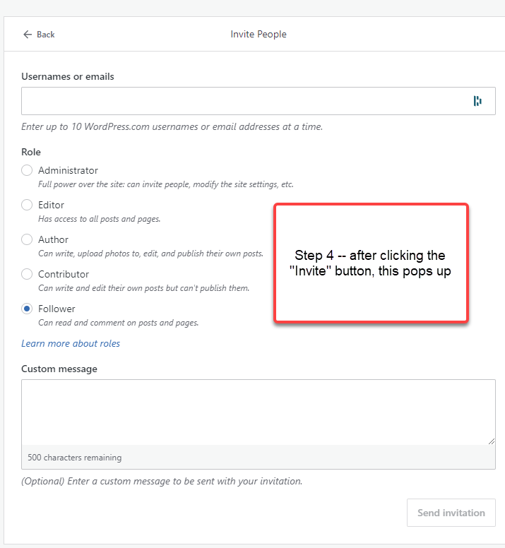 Forgot this, the popup result of clicking “Invite” button on People screen